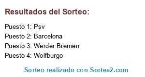 Lista de participantes: Barcelona, Werder Bremen, Psv, Wolfburgo.
