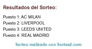 Lista de participantes: LIVERPOOL, LEEDS UNITED, AC MILAN, REAL MADRID.