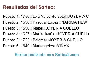- Puesto 1: 1750 Lola Valverde soto JOYERÍA CUELLO