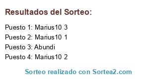 Lista de participantes: Marius10 1, Marius10 2, Marius10 3, Abundi.