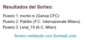 Lista de participantes: Letal_19 (A.C. Milan), Pabliiin (F.C. Internazionale Milano), monto rs (Genoa CFC).