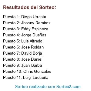 Lista de participantes: Chris Gonzales, Jhonny Ramirez, David Borja, Diego Urresta, Luigi Ludueña, Luis Alfredo, Jorge Dueñas, Juan Barba, Jose Roldan, Jose Daniel, Eddy Espinoza.