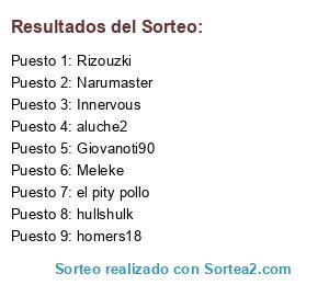 Lista de participantes: el pity pollo, Meleke, Narumaster, Innervous, aluche2, homers18, Giovanoti90, Rizouzki, hullshulk.
