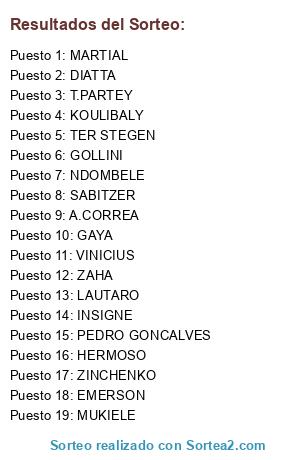 Lista de participantes: TER STEGEN, GOLLINI, EMERSON, MUKIELE, KOULIBALY, C.ROMERO, HERMOSO, GAYA, ZINCHENKO, PEDRO GONCALVES, NDOMBELE, SABITZER, T.PARTEY, A.CORREA, ZAHA, LAUTARO, DIATTA, INSIGNE, VINICIUS, MARTIAL.