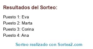 Lista de participantes: Eva (2 participaciones), Ana (2 participaciones), Marta (2 participaciones), Corina , Corina.