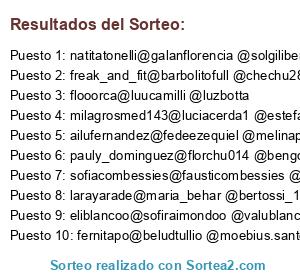 Lista de participantes: _candelamansilla@_abrilmansilla @palobrusco_, abivarelaa@gisofalia @carlonnga, agoscaggiano@valenncuenca @valeenrodrigueez ❤️, aguferrari@constanzamartinez @rochyf, agusgua99@maruiturrioz @vickycilander, aguustripaldi@aniel4675 @gianfriii_44, ailufernandez@fedeezequiel @melinapetrosino, ale_stoyan@verocarafa @ohtokicat, aliceginjaume🤞🏻 @juambl @barbycim, anags76@ceci8a12 @josegs78, anama.pp@roldepollo @_roandres, andlee15@juradokelli @jenny_urq, andylitvak@woktovnow @libesznurewicz, andypastel@sabrimichanie @nadinedelman, angiesaenzb@terlizzialejandra @agusmagali.n, anuchavilla@micatag @soleverce, arasantalla@titanamodel @karen.notararigo, axelbobzin@laibobzin @bitecaprichosdulces, azubazan@julivaccaro @delfinabasterra, azucenagarciaroy@dcuadern #algundiaganaremos#perseveraytriunfaras, ba.restauranthopping@florgutierrezz @candegutierrezz, barby.gomezz@micaeladardano @carolinaanahi1, belu_blue@ferchor @mariaflorencia.s, biancaambros@cukicuerva , @agui_agata, biancamarsico@alfonmarsico @soniaalari, caarooliinafernandez@pabloecedeira @maibetts 🤞, camifinochiaro@caamigimenez @riveramer, camihfernandez@ailugaleano @carmarielcastro, camimigale@oriividal @corimigale, carfarinella@laurafarinella @yam74, caritojaime15Comida rica y sana @marielagorostegui @emiliaunamuno @unamunomariana, carokaluk@tatakaluk @samikaluk, ceci8a12@anags76 @josegs78, cecidela@sildela @una_dulcetentacion, ceciilorenzo@gabucha_36 @gareynososoria, cecilia_galetto@nataliagaletto @carlasturzenegger, cecimoralmunoz@lausalina @r.eg.i.na, ceesn@brunoamarc @lenniefernandezl, cervezakilca@lulumartinezz @agustina_martinez11, @charolopezm, chechuneira@flatraballoni @chililatorre, claritafasciglione@luciapzz @adri_medl, @cnjirjak, cvvegacarolina@comagovega @pogonzanorma, cynncyn@ann_some_ @ragdoll_93, danimalamud@sofimalamud @virginiamalamud, danrodriguezfrank@silgejo @pagp86, dcuadern@azucenagarciaroy @roxanacuadern uds siempre me acompañan en los sorteos, lástima q nunca gano!!, delficalabro@cucucordoba @vicgaviola, delficaversaschi@villanuevags @camifndn, eliblancoo@sofiraimondoo @valublanco, esmesosayunes@monesruizmaria @tefjimenez, estoyafectado@unnuevodiaa @lic.danielita, eugecozzani@ceciliacozzani @ine_alfaro, eugeforcher@josephinemp @pauligeyer, facrons@vickycastronuovofarrell @rockosabe, farfantamara@90celegnr @crisvidela1, fer_cesaretti@steiningerkaren @luna_herida_, fernitapo@beludtullio @moebius.santelmo, fiamacqua@mariacarlaacquarone @macqhes, fifiruli@florgrosjean @anarvtt, flooorca@luucamilli @luzbotta, flor.r.diaz@carobdiaz @aniszilagyi, florenciacapalbo@moresobreruedas @anavaleri76, @florencialejarraga, florgonzaleze@yonatanparedez @sofiamnofal, florrmelga@lulita.bertolino @lujan_rm, florsaavedraok@ludmilita66 @pamecel, franyoliette@guillebarrios84 @neisa_millan 😀😀, freak_and_fit@barbolitofull @chechu2809, ga_ma_jo@landiaroxy @josegrosa35, gabigue_85@ibelclavin @lu_guelar, @gabriel_manzetti, gioguidoni@chiaraguidonii @zahiramussi, giselalopez144@varela_elena @cande_amestoy2004, gonzabullian@juancruzn_ @mel.blancoruiz, gra_de_la_cruz@belgrasso , @gatiporro ., guada.santamarina@mica.musacchio @justivelasco, guadaurriza@stephiortiz @joaconoli, gvsan07@mirtairigoyen @rubensanto5088, harcoav@monimuniza @aguslikesnatural, healthyholicc@juanamarelli @luchirobles, healthyholicc@martujanin @sofibordalejo, itsyaahi@vickiantonio @maguispilere, jberestein@gracielasramos @bymarinasuarez, jessis_mab22@mely1900 @merchuu_gaitan, jimelebellot@alezimmerman_ @magmaoceano, jiriva77@paola_riva @belomariano, joa_sander@andy.sander @kurcofx, joacowdasilva@val.vallejos @morogalarza, joscose@magusjime @julietbalma, josemariavaello@debiifiladoro @venegasstuff, juanitabello@francupaz @josepazd, juleecosenza@piacastilletti @gallosofi, juliblancob@gabrielakruk @feloscaglio, julie.laprofeFeliz primavera @joaquincrimson @pilialdirico, julietadalonso@russobarbi @soofricci, juliti83Me encantan los productos! @mariaceleste.bautista y @moniwatrycz, lady_vale_ok@desolca92 @marthaaliciaorellana, lagomarina_@florenciasanttana @aldibelen96, laibobzin@axelbobzin @bitecaprichosdulces, larayarade@maria_behar @bertossi_10 😍, lauflor.saludable@isadalo @maryoly2, laurita_cielo@lachinaylafruta @monymira, lausalina@joacopereyra @cecimoralmunoz, lelia_fabian@paulasarso ✌✌✌, lfzanotti@vikuchas @julibandi, lili_more@meymore @fersmore, lilianabeatriz.peralta.5@vane_cellay @ferescamez, lorerinaldini@ponallense @rominarinaldini, lubravo_@agusgalarza1 @camisanto, luchirodriguez@charorodriiguez @martirodriguez8, lucianacfc@marinalourddes @danihamish, luisinaatosoni@camibellotto @candetosoni, luligiambruni@mararipoll @lunaperezm, lulubygilda@vberenguer ,@abrilberenguer, luucamilli@flooorca @nachitobusta, luuu_dm@victoria._bm @solcaronte ♡♡♡, luz_godoy@cande.digiu @rominachizzotti, luzbotta@_tamiencinas @napopontes, luznicotra@msofiamaciel @ro.faga, maca_olivieri@tanhueca @yamilaroman, macarena.nogueira@cecijuaz @anto.carnevale, mada.az@charolopezm @sofia.olaso, mafernanda_73@solcivalenzuela @rrovalenzuela, maguacerruti@vickygattoni @conragattoni, magusjime@msofijimenez @eughilettieri, maibulacio@sofiaiemmi @ailubulacio, maisesar@teeefi.m @rociomilito, malepuntel@manughirardi @laurassetto, maludiaaz@manadelettieres @candenavarro, manurvelez@pautii @paulidesimone, mari_arcamone@befabau @lulu_camacho80, mariadcporcelana@cremaschipaula @eugecremaschi, mariadeelia@josefinayacobucci @candefrias, mariapera5@veronicainespaz @victoria_latour, mariartp@maberodriguezdipaolo @artigasmaru, marie.florencee@antitocapparelli @anuchacalvo, mariedilu@solercaroo @natimihelj, marielagorostegui@agosgy @caritojaime15 @mar_ripke, marieportilla@romymartinez82 @loliporti miren estas burgers veganas de Juliana López May!! 😋, mariu__fernandez@gabydragon64 @enformasdecoral_, masnatuQue buenos!! @estoyafectado @yemajuna 😍😍👍👍👍, maximaspiaggi@agusgua99 @stateresalxxvii, mdelmarfitness@seismesino33 @rociomilione, mechisampa
