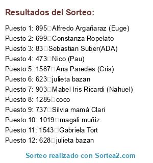 Lista de participantes: 1 Juan Manuel Ruiz (ru), 2 Papa Azu, 3 Cami (ada), 4 Ariel(efra, 5 Cami (ada), 6 Papa Azu, 7 Fede JT (ru), 8 mamá Sofi (Nati), 9 Alan (ludmi), 10 Sebastian Suber(ada), 11 Papa Azu, 12 Cami (ada), 13 Papa Azu, 14 Papa Azu, 15 mamá Sofi (Nati), 16 Lucia(efra), 17 Euge (ru), 18 Cami (ada), 19 mela(efra), 20 Papa Azu, 21 Papa Azu, 22 El Dani Club ( ru), 23 Cecilia Intile (Flor S), 24 Andrés (nati), 25 Andrés (nati), 26 Demian (Ru), 27 mamá Sofi (Nati), 28 Negro Rami (nati ), 29 gonzalo ghigo (ludmi), 30 Papa Azu, 34 Wanda Carillo (ada), 37 Cami (ada), 41 clara( Ada), 44 Diana (Nati), 47 Cami (ada), 48 Wanda Carrizo ( Ada), 50 alan (ludmi), 55 madre Sofi (Nati), 56 Nazareno Hermano Valen derecho ( ru), 57 Pelado amigo Ru (Ru), 58 Maka amiga demian ( ru), 59 Lucia (efra), 66 Mauro Artes ( ru), 68 Maka amiga demian (ru), 69 Lucas Hermano Ange ( ru), 72 Ger Rapero ( ru), 73 Ariel (efra), 74 Mica (tomi s), 75 Cecilia Intile (Flor S), 77 Tomi Rappi (Amigo de facu) ( ru), 78 Tincho (Nati), 79 mela(efra), 80 Maka amiga demian (Ru), 83 Sebastian Suber(ADA), 84 Miqueas (efra), 88 Maka amiga demian (ru), 89 Eneas ( ru), 92 Demian (Ru), 95 Rochy (Euge ru), 98 Euge ( ru), 99 miqueas, 101 charly, 103 nico barick, 104 nico barick, 112 lelia, 113 Eli, 114 Fede, 115 Caro, 116 Andre, 117 Mauro, 118 Mauro, 122 grego (nico), 130 grego ( nico), 151 sol visuales, 152 Sofía Vinnet, 161 viviana serafin( cami), 162 agus aguirre ( cami), 163 viviana serafin( cami), 164 viviana serafin( cami), 165 viviana serafin( cami), 166 viviana serafin( cami), 167 viviana serafin( cami), 168 viviana serafin( cami), 169 agus aguirre ( cami), 170 viviana serafin( cami), 231 viviana serafin( cami), 232 viviana serafin( cami), 233 mabel serafin( cami), 234 mabel serafin( cami), 235 roxana serafin( cami), 236 roxana serafin( cami), 251 Juan Pablo Molina (cande p), 278 Taiel Aguirre (cande p), 297 Ivana Masilla (cande P), 317 Ramiro Lopez, 318 Nico traversi, 321 Adriana Ahumada, 324 Francisco Sosa, 325 Francisco Sosa, 328 Rocio Miranda (cande p), 331 Ramiro Lopez (cande g), 348 Ramiro Lopez (cande g), 351 Mario Guzmán, 385 Ramiro López, 395 Adriana Ahumada, 412 dafne (mati), 413 dafne (mati), 414 mama (mati), 415 mama (mati), 423 valen, 424 valen, 425 valen, 426 valen, 427 valen, 428 valen, 429 valen, 430 valen, 431 valen, 432 valen, 433 valen, 434 flor llo hermano, 435 flor llo hermano, 436 flor llo hermano, 437 flor llo hermano, 445 luli, 446 luli, 447 luli, 448 luli, 449 luli, 450 luli, 451 luli, 452 luli, 453 luli, 467 Alicia (Pau), 468 mica (Pau), 469 Alicia (Pau), 470 Mica (Pau), 471 sin vender, 472 Mica (Pau), 473 Nico (Pau), 474 Nico (Pau), 476 Mica (Pau), 499 andy (Pau), 500 Andy (Pau), 575 Nico Arzuaga, 593 Valentina Zurbriggen (Milahí), 594 Cristina Chalabe, 595 cristina chalabe, 596 Valentina Zurbriggen, 621 analuz bounome, 622 renata martinez, 623 julieta bazan, 624 natalia gallardo, 625 valentina herrera, 626 valentina petiti, 628 julieta bazan, 629 natalia gallardo, 630 valentina petiti, 631 valentina herrera, 632 renata artinez, 633 analuz bounome, 636 Tincho, 639 Ale buendia, 651 Camila Ropelato, 655 Marcela Trettel, 656 Victoria Morales, 657 Sonia Papera, 658 Victoria Morales, 659 Victoria Morales, 660 Gabi Soler, 661 Gabi Soler, 666 Victoria Morales, 671 Florencia Pereyra, 673 Ale Puig, 674 Tomás Verón, 675 Nicolás Martínez Rojo, 676 Constanza Ropelato, 677 Sonia Papera, 678 Marcela Trettel, 679 Ale Puig, 682 Florencia Pereyra, 683 Simón Bruna, 684 Delfina Castro, 686 Camila Ropelato, 687 Sonia Papera, 690 Simón Bruna, 696 Ezequiel Bernal, 697 Leticia Celli, 698 Leticia Celli, 699 Constanza Ropelato, 700 Sonia Papera, 707 Valen fcc, 717 Valen fcc, 723 Silvia mamá Clari, 732 Valen fcc, 737 Silvia mamá Clari, 747 Kevin, 748 Kevin, 749 Valen fcc, 851 Magdalena (Julia), 852 Magdalena (Julia), 853 Luis (Julia), 854 Luis (Julia), 855 Ceci (Julia), 856 Ceci (Julia), 857 Luis (Julia), 858 Luis (Julia), 859 Angela (Julia), 860 Angela (Julia), 868 Eduardo Alcalde (Romi), 869 Eduardo Alcalde (Romi), 870 Eduardo Alcalde (Romi), 871 Eduardo Alcalde (Romi), 872 Alejandro Echeverría (Romi), 873 Alejandro Echeverría (Romi), 874 Rony Heredia (Romi), 875 Julian Meneses (Nacho), 882 Huenu Peña (Alma), 883 Laura Ferrari (Alma), 884 Mónica Amaya (Alma), 885 Mónica Amaya (Alma), 886 Patricia Amaya (Alma), 887 Laura Ferrari (Alma), 888 Patricia Amaya (Alma), 889 Inés Krohling (Euge), 890 Camilo Argañaraz (Euge), 891 Eugenia Solís (Euge), 892 Francisco Luna (Euge), 893 Francisco Luna (Euge), 894 Alfredo Argañaraz (Euge), 895 Alfredo Argañaraz (Euge), 903 Mabel Iris Ricardi (Nahuel), 904 Mabel Iris Ricardi (Nahuel), 905 Mabel Iris Ricardi (Nahuel), 906 Marina Rodiguez (Nahuel), 907 Marina Rodiguez (Nahuel), 908 Marina Rodiguez (Nahuel), 909 Nahuel, 911 Juan Moyano (Marce), 912 Juan Moyano (Marce), 917 Cristina Palma (Julia), 918 Cristina Palma (Julia), 919 Cristina Palma (Julia), 920 Cristina Palma (Julia), 921 Luciano (Julia), 922 Luciano (Julia), 951 Fernando Oviedo, 952 Nicolas Monforte, 953 Corina Ilardo, 954 Florencia Filli, 955 Nicolas Monforte, 956 Fernando Oviedo, 957 Mariana (keka), 958 Rosi Daghero (keka), 959 Caro Orozco (keka), 960 Veronica Amaranto, 961 Veronica Amaranto, 962 Gaston (keka), 963 Matias Oso, 964 Matias Oso, 965 Matias Oso, 966 Guille pension, 967 Julio, 968 Julio, 969 Alicia Bogni, 970 Laura Grasetti, 971 Roxana Merlo, 972 Florencia Fili, 973 Belen Moreno, 974 Alicia Bogni, 975 Malvina Gonzalez, 976 Zully Pallero, 977 Adriana Ortiz, 978 Zully Pallero, 979 Malvina Gonzalez, 980 Malvina Gonzalez, 981 Mariana Curuchet, 982 Julieta Catena, 983 Maria Laura Demo, 984 Mariana Curuchet, 985 Julieta Catena, 986 Matias Oso, 987 Corina Ilardo, 988 Emilse Giardi, 989 Noel Peuser, 990 Belen Moreno, 991 Adriana Ortiz, 992 Malvina Gonzalez, 993 Fabiana Augusto, 994 Fabiana Augusto, 995 Fabiana Augusto, 996 Fabiana Augusto, 997 Lorenzo Bec (keka), 998 Lornzo Bec (keka), 999 Carme