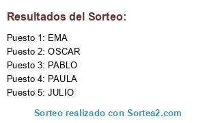 Resultados del sorteo: