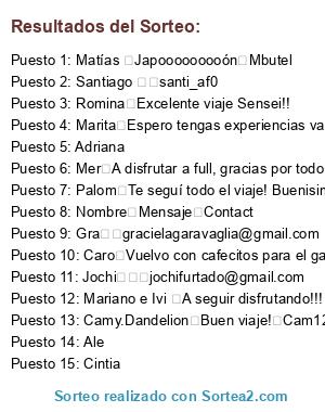 - Puesto 3: Romina Excelente viaje Sensei!!