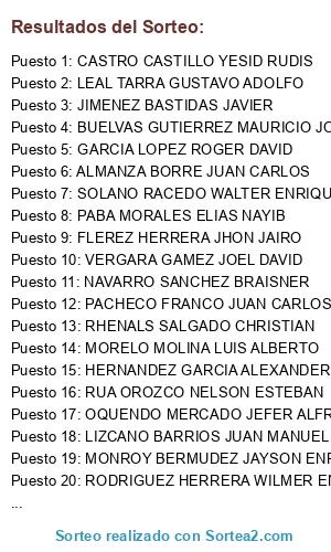 - Puesto 22: OBREDOR MURILLO FABIO ENRIQUE