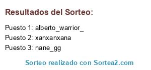 Lista de participantes: valsiror(2), lucas_78, zodiark611, simonpinach, jappygrizz, khalendrya, magmaticfriend4, ixartz, seirim, capitancthulhu, alberto_warrior_, madgoatprime(2), katytavizon, benja_m9, rukkieta, chloeredfield_, luisiito994, coffi_milk, lupuliyo, rhonnoa, bajamamut, diegocapsulo, maxechidnabat, nanunemiku, defcon___1, drcosta82, ersergiio135, moncandre, evangelion37, blinded_lma, unnamed_freak(6), elputoblade, elgranyipi_, harukiiiiii, jprojekts, obiwantibboni, ninnax, xshudyx(2), retroancestral19, ponyerotico69, Cerrebe, adnane976, gorrionnocturno, Esther988, naizard, gonzarrion, advectionstride, darksanz, hiimmidnight, Usuario anonimo C, sagittavacuum, windsdeath, zarpitasjapan, blurheim, zenutriopez, gatchilegend, shindanar, fure76, insannelol, erken88, geoexarion, lovoz, ninaariel, hanzodice, viridiannyx, anibalpersus666, tioben_0, ninjapuddy, hoplita(2), ventusdei, jvlpartlh, wisherfox, rayandeath, mytictv, chiieki, natillerohd, thasatwitch, killersam88, onikagesaulo, viduakre, rognerius, akirashinigami, xanxanxana, evil_alana, s0nshine_(2), oscarbtome, chucky2387, atennes17, mack_effect, rion_jueivra, nane_gg, riumou, ismajudoka, kiwiastral, zouterx, manelodin10, jacobo_30, taiyousei, xgothx666, daisystar_, saizo88, chris_red86, nicokaze95, yenchas, bukowsk, talontrent, crazyjalapeo(4), lupusgallaicus, sirpinguinelton, zalkker, stormseeker79, delapiero26, balaramff, shirosinclair, x_shuck89_x, klight15, jesmaz6, gtantoniosl, supraignem, yuki0nna, ken_aku, lshaiganl, rocklez, seterissa, triop9, galitooos, mgeli99.