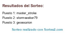 Lista de participantes: sirpinguinelton, raqueljudoka, stormseeker79, madox_gaming, koyuruh, broka_alive, chiieki, rion_jueivra, hanzodice, chris_red86, elgranyipi_, rhonnoa, sheelark, druibabi, seterissa, hi_im_murloc, mack_effect, shirosinclair, galitooos, gonzarrion, ismajudoka(2), mgeli99, supraignem, hiimmidnight, obiwantibboni, ponyerotico69, coffi_milk, capitancthulhu, nanunemiku, kiwiastral, zol_neoxyde, hidralisma, master_stroke, lucas_78, supwe_de_pon, ladyartmer, katytavizon, harukiiiiii, indieisland, babirehoz, rocklez, manelodin10, jujogan, geoexarion, sararayu, jappygrizz, andreea_mlg, trust17, simonpinach, talontrent, madgoatprime, maxechidnabat, riumou, s0nshine_(2), el__camper, ninnax, blurheim, gamitosis, zarpitasjapan, cerrebe, shindanar, balaramff, narehop, oscarbtome, alemba, triop9, alberto_warrior_, atennes17, reon_regalizfer, ninmah89, naizard, klight15, migue_clx, drcosta82, jesmaz6, x_shuck89_x, darksanz, davydharadok, hoplita, nicokaze95, advectionstride, viduakre, bajamamut, gatchilegend, rognerius, anónimo C, rayandeath, natillerohd, alpargatasquad, tioben_0, xavi9010, benja_m9, blinded_lma, seelenfur, ninaariel, xshudyx(2), vanesa_vini, nane_gg(2), saizo88, evil_alana, jesuflash, ken_aku, ryuk_jaw, zouterx, akirashinigami, litogarciar, unnamed_freak, windsdeath, tetsu_sensei, Azhura_, Paquitolr, Yurikox1618.