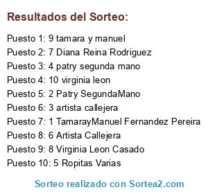 Lista de participantes: 1 TamarayManuel Fernandez Pereira, 2 Patry SegundaMano, 3 artisa callejera, 4 patry segunda mano, 5 Ropitas Varias, 6 Artista Callejera, 7 Diana Reina Rodriguez, 8 Virginia Leon Casado, 9 tamara y manuel, 10 virginia leon.