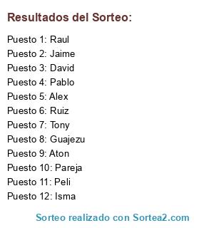 Resultados del sorteo: