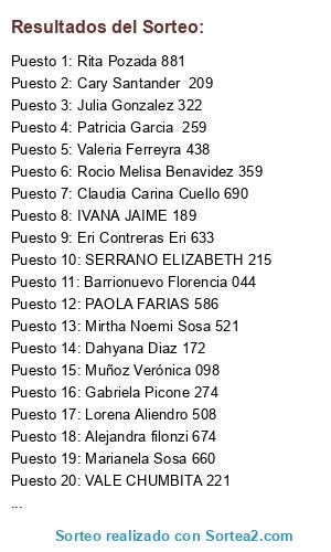 Resultados del sorteo: