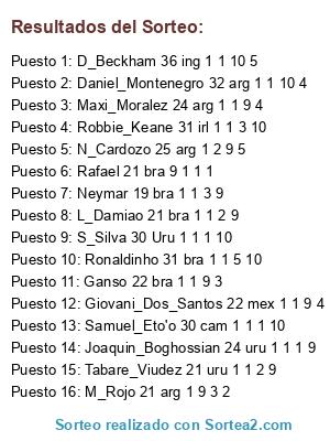 Lista de participantes: Oliver Atom, Pablo Carranza, lolo, Fatiga94, ignacio, NachoJ, JRRiquelme10, motleyrock, Braian.-, TM7, Mateo, rubenal, Richard Tex Tex, Zero, pablocaslaa, el7deespaña.