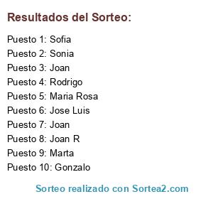 Resultados del sorteo: