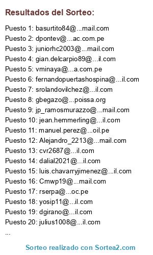 Lista de participantes: @alfonsonole, @basurtito84, @gian.delcarpio89, @gbegazo, @juniorhc2003, @0220050, @dantebermudezcastro, @gpinillosr, @zinho1524, @jp_ramosmurazzo, @Edgar.Garcia, @manuel.perez, @samu250186, @dgirano, @dpontev, @julius1008, @yiparraguirre, @jean.hemmerling, @jlr-martinez, @gerpertableros, @jaimemartinezdelgado, @cvr2687, @Alejandro_2213, @jungbluthsjyoungblood, @rdiazsubauste, @Cmwp19, @srolandovilchez, @christopher.sarrion, @jjcm2301, @rperez_reyes, @elvinvera3, @mgquintana9, @biosoporteperu, @paolo_9_8, @vminaya, @dalial2021, @ralfaro, @macuito027, @xumbi9804200, @jorgelozanomora22, @luisfher283, @cristhopher22, @luis.chavarryjimenez, @clescano, @yosip11, @fernandopuertashospina, @rserpa, @mriverapanta.