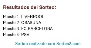 Lista de participantes: FC BARCELONA, OSASUNA, PSV, LIVERPOOL.