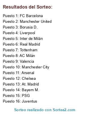 Resultados del sorteo: