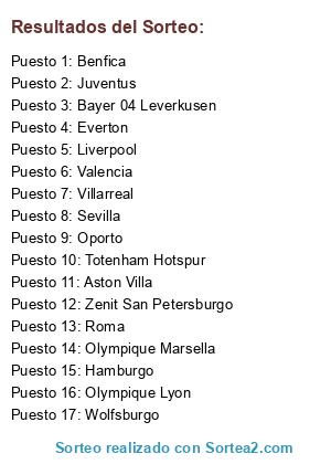 Lista de participantes: Liverpool, Totenham Hotspur, Olympique Lyon, Roma, Sevilla, Juventus, Benfica, Valencia, Bayer 04 Leverkusen, Wolfsburgo, Aston Villa, Oporto, Zenit San Petersburgo, Hamburgo, Olympique Marsella, Everton, Villarreal.