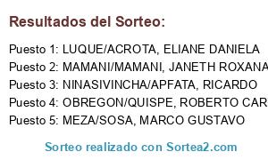 Lista de participantes: LUQUE/ACROTA, ELIANE DANIELA, MAMANI/MAMANI, JANETH ROXANA, MEZA/SOSA, MARCO GUSTAVO, NINASIVINCHA/APFATA, RICARDO, OBREGON/QUISPE, ROBERTO CARLOS.