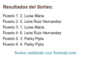 Lista de participantes: 1. Luisa Maria., 2. Luisa Maria, 3. Parky Pijita, 4. Parky Pijita, 5. Leire Ruiz Hernandez, 6. Leire Ruiz Hernandez.