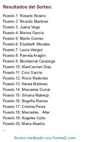 Lista de participantes: Cruz García (5 participaciones), Pepi Gilberte (3 participaciones), Rocio Redondo (6 participaciones), Rosario Rosino (7 participaciones), Marisa García (6 participaciones), Patricia Muñoz (6 participaciones), Jaime Sanchez (3 participaciones), Trinidad Molina (2 participaciones), Ana Lozano (4 participaciones), Ana Ponce , Marilo Gomez (7 participaciones), Cristina Perez (6 participaciones), Mercedes Curral (3 participaciones), Elizabeth Morales (5 participaciones), Laura Vengut (12 participaciones), Claudia Casado (2 participaciones), Pamela Aragón (8 participaciones), María Unanue (2 participaciones), Carolina Martos (4 participaciones), Begoña Ramos (6 participaciones), Cristina Aguirre (2 participaciones), Eulalia Rastrilla , Mónica Fernández (2 participaciones), Montserrat Caulonga (12 participaciones), Mercedes Aller (2 participaciones), María Abadía (3 participaciones), Carmen Llorens , MariCarmen Diaz (4 participaciones), Juana Vega (13 participaciones), Conchita LLorens (2 participaciones), Ricardo Martinez (5 participaciones), Cristina Enríquez (4 participaciones), Carmen Podadera (3 participaciones), Ines Pañeda , Silvana Makeup (15 participaciones), María Gasco (6 participaciones), Nerea Martinez (2 participaciones), Conchita Llorens (3 participaciones), Elena Resendiz (2 participaciones), Angeles Cobo (2 participaciones), Martina Mollar (2 participaciones), Martina Mollar.
