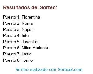Lista de participantes: Napoli, Fiorentina, Inter, Juventus, Torino, Milan-Atalanta, Lazio, Roma.