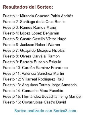 - Puesto 15: Hernández Bovadilla Irving Manuel