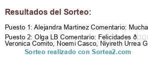 - Ganador: Alejandra Martinez Comentario: Muchas felicidades!! Maria Soledad Moran Giovana Mesinas Aguiilar