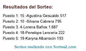 - Puesto 1: 15 -Agustina Gesualdo 517