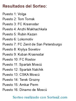 Lista de participantes: Anzhi Makhachkala, Amkar Perm, CSKA Moscú, Dinamo de Moscú, FC Krasnodar, FC Rostov, Krylya Sovetov, Kuban Krasnodar, Lokomotiv, Rubin Kazan, Spartak Moscú, Spartak Nalchik, Terek Grozny, Tom Tomsk, Volga, FC Zenit de San Petersburgo.