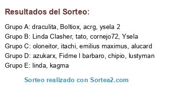 Lista de participantes: Boltiox, azukarx, alucard, itachi, chipio, tato, emilius maximus, Linda Clasher, Ysela, kagma, lustyman, oloneitor, cornejo72, Fidme l barbaro, acrg, linda, draculita, ysela 2.