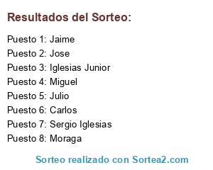 Lista de participantes: Jaime, Moraga, Julio, Jose, Miguel, Carlos, Sergio Iglesias, Iglesias Junior.