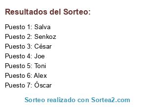 Lista de participantes: César, Óscar, Toni, Salva, Joe, Alex, Senkoz.