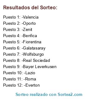 Lista de participantes: -Oporto, -Benfica, -Valencia, -Real Sociedad, -Fiorentina, -Roma, -Lazio, -Bayer Leverkusen, -Everton, -Zenit, -Galatasaray, -Wolfsburgo.