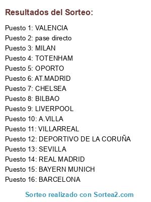 Lista de participantes: barcelona, Bayern Munich, O.Marsella, Juventus, Inter de Milan, A.Villa, Chelsea, Totenham.