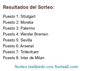 Lista de participantes: Tottenham, Morelia, Arsenal, Werder Bremen, Inter de Milan, Sttutgart, Palermo, Sevilla.