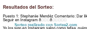 - Ganador: Stephaniie Mendéz Comentario: Dar like a la página de Facebook 😍😍✅✅ Seguir en Instagram 😍😍✅✅ Yo los sigo en Instagram salgo como tefaa_quiiros😍😍