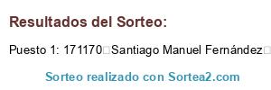 Este sorteo ha sido certificado por Sortea2. Sortea2 garantiza que:
