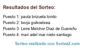 Lista de participantes: Tamara Rodriguez, Mar Rodriguez Cruz, Leire Melchor Diaz de Guereñu, paula brizuela lorido, mari adel mar nieto santiago, irene diaz simon, Carlos Fernández Delgado, david izquierdo berezo, Diana Garaloces Fernández, Manoli Abal, ana maria gordillo perez, Estibaliz santos, borja goikoetxea, marisa martinez.