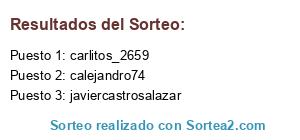 Lista de participantes: javiercastrosalazar, carlitos_2659, jean_torres79, calejandro74.