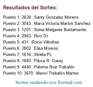 - Puesto 2: 3043 Maria Victoria Martos Sanchez