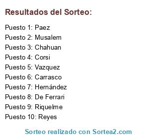 Lista de participantes: De Ferrari, Vazquez, Paez, Reyes, Riquelme, Carrasco, Musalem, Hernández, Corsi, Chahuan.