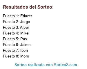 Lista de participantes: Erlantz, Ibon, Jaime, Jorge, Moro, Alber, Pas, Mikel.