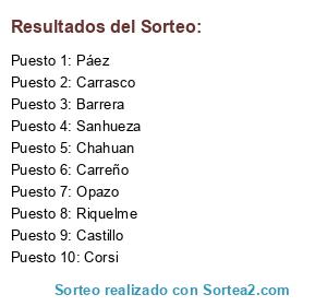Resultados del sorteo: