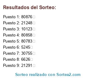 Resultados del sorteo: