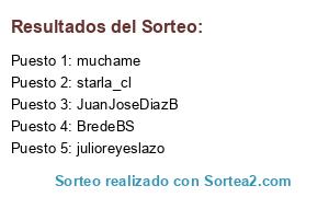 Lista de participantes: fader4u, 2litros, cristianknudsen, RenaPlop, jorgedelriff, pilarsotomayor, diegocajas, marsonauta, kathyuskaNevada, Ibenn, jOnAAaH, eduardo_pm, msaldivia, ThingInABook, victorfigueroa, Alejandrov_, tupadre_es, steve_sk8, BredeBS, msobrevia, rodrick26, sordon04, creadicto, mile_klaric, miltong71, LornaBB, lobos, starla_cl, osotomayorh, muchame, Monyicita, AlejandroUreta, CAGARL, vmqpmv, JuanJoseDiazB, lemusalem, julioreyeslazo, bien_mur, elmercurio, EDUARDOCACERESC.