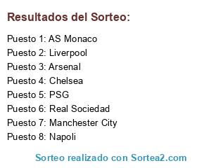 Lista de participantes: PSG, Chelsea, Arsenal, AS Monaco, Liverpool, Real Sociedad, Napoli, Manchester City.